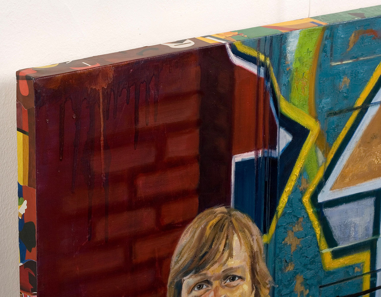 The edge is made of a collage of art by artists the sitter liked.