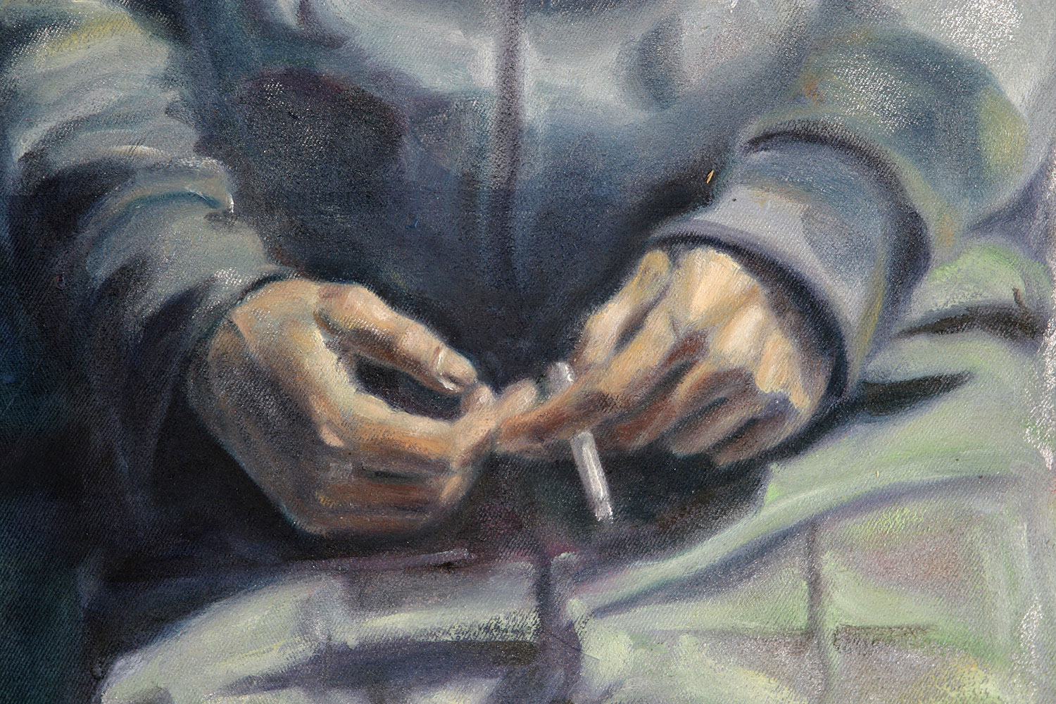 I allowed some of the silver paint from underneath the figure to show through the hooded top. On the whole, the silver paint was a blessing in disguise.