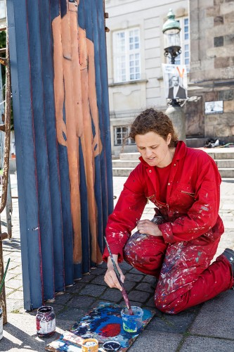 I have met very many people while painting in front of the Parliament. Some I talk to for minutes. Some I talk to for hours. This photograph is by a press photographer who happened to be passing by. http://www.ehbrecht.dk/