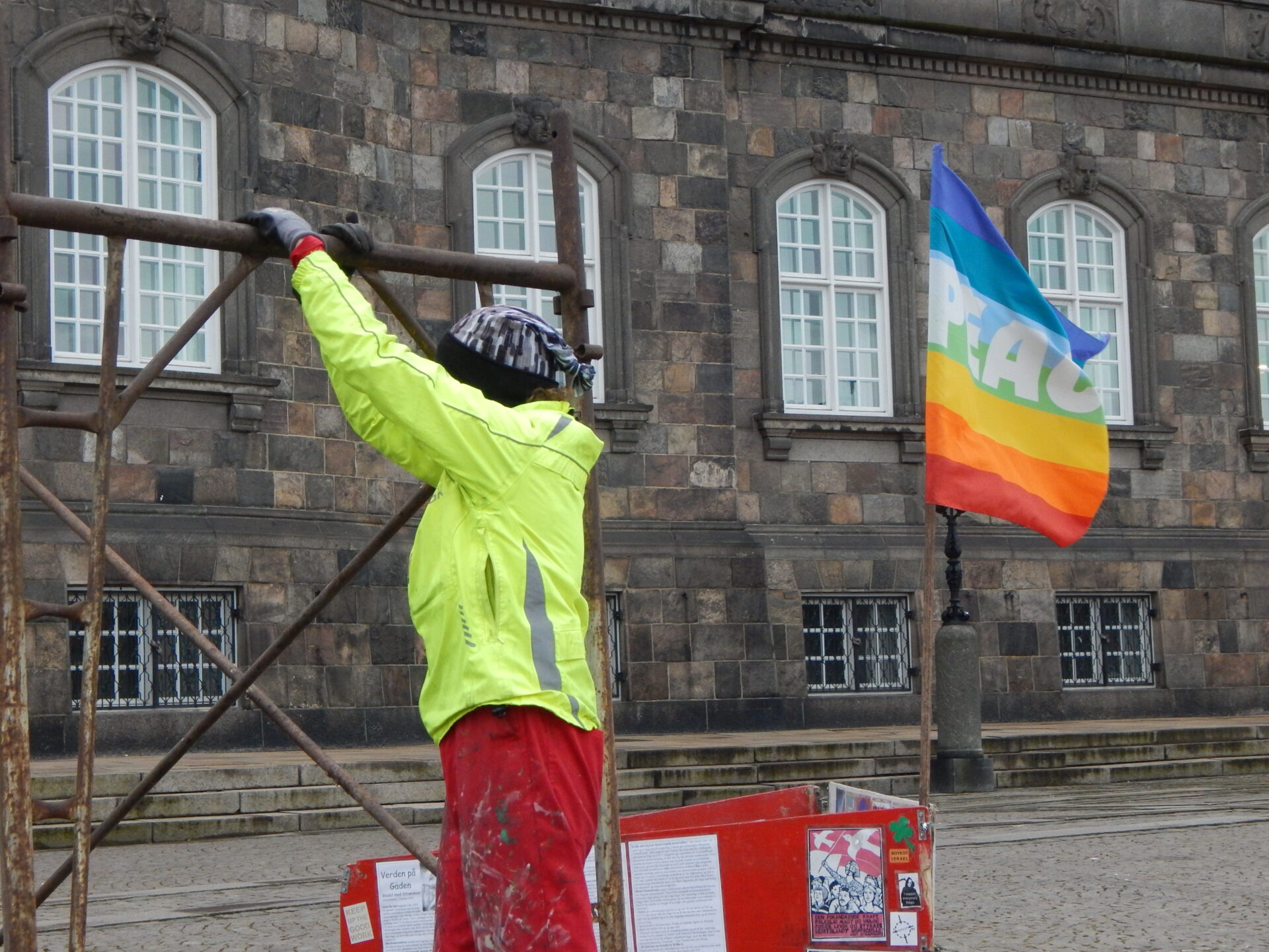 The painting I was going to make was a result of increased negativity towards muslims after the Copenhagen shootings on 14th Feb. I chose the story of how the sun and the wind competed to get a man to take his coat off, because it reminds us that gentle love is a more effective response than hateful force.