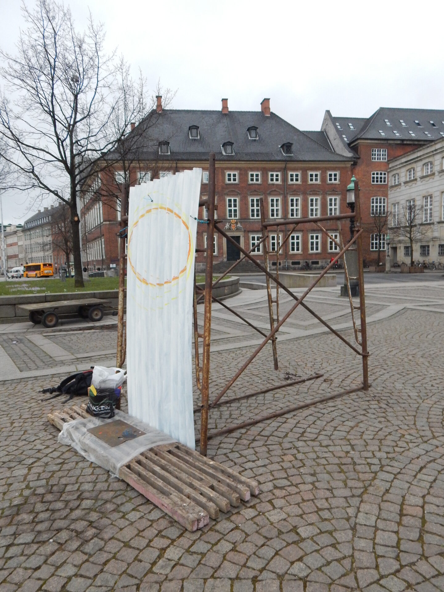 The circle was the only thing I painted at the studio due to the fact it was going to be very difficult to create on a corrigated surface.
