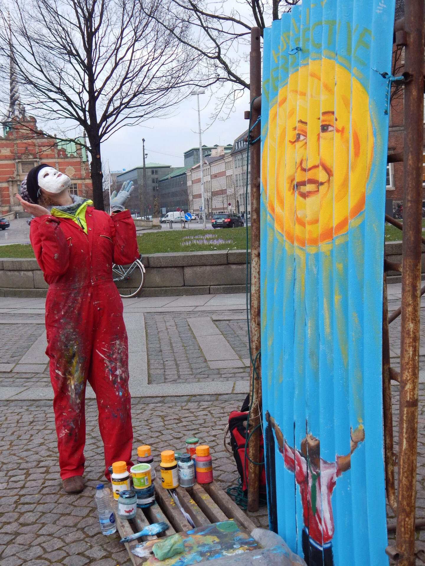 I wore a mask firstly to link my activity to the demonstration I made outside Den Frie Exhibition during its Opening. The mask heightens curiosity, It also makes me more annonymous. I like that this could make my artwork less about where I come from or look like, and more about the statement.
