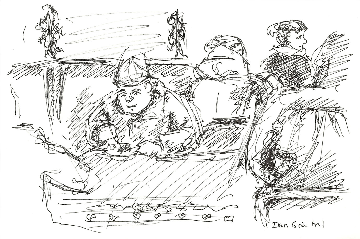 One of a series of sketches from Christiania’s Christmas Market
