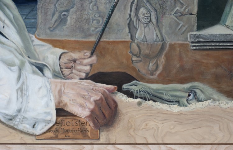 The dog-like creature comes from Frello’s painting, Dyrevennen/The Animal Friend.