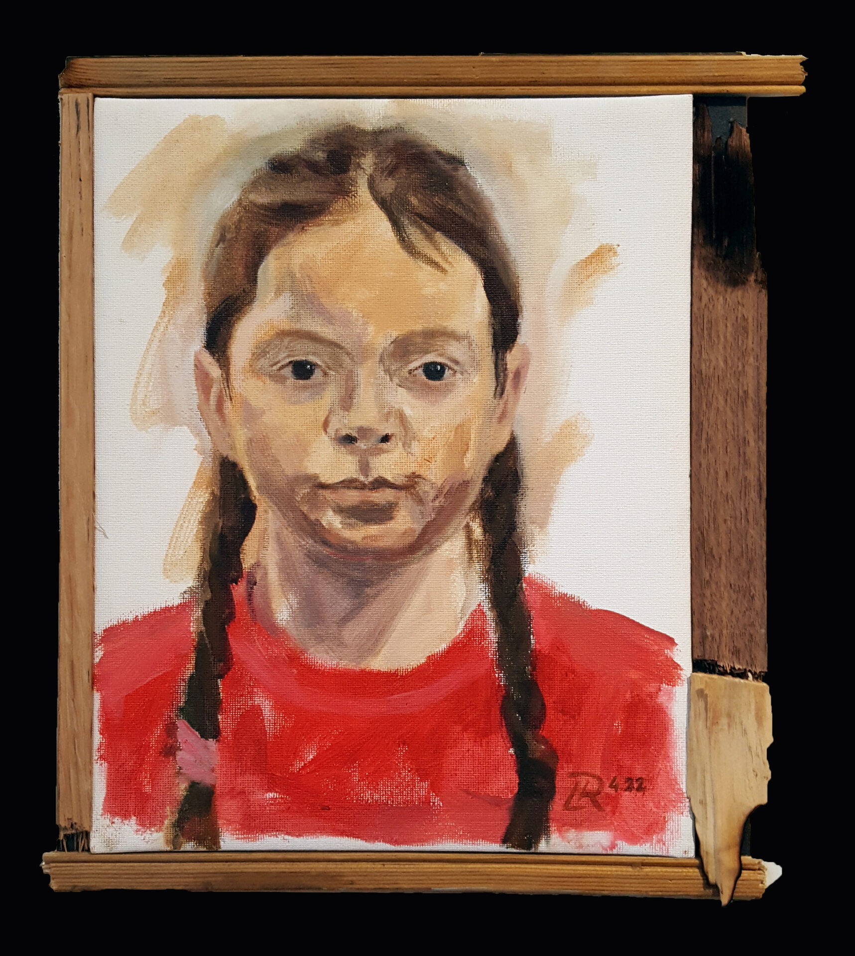 At 5am we woke up to noisy explosions. We were very scared and my mother said the war had begun. Rockets were flying constantly, and something exploded. On the 7th day of the war, fighting broke out near our city. We almost lived in the basement for 10 days, always warmly dressed. We decided to flee when the tanks came. Thank you DK.