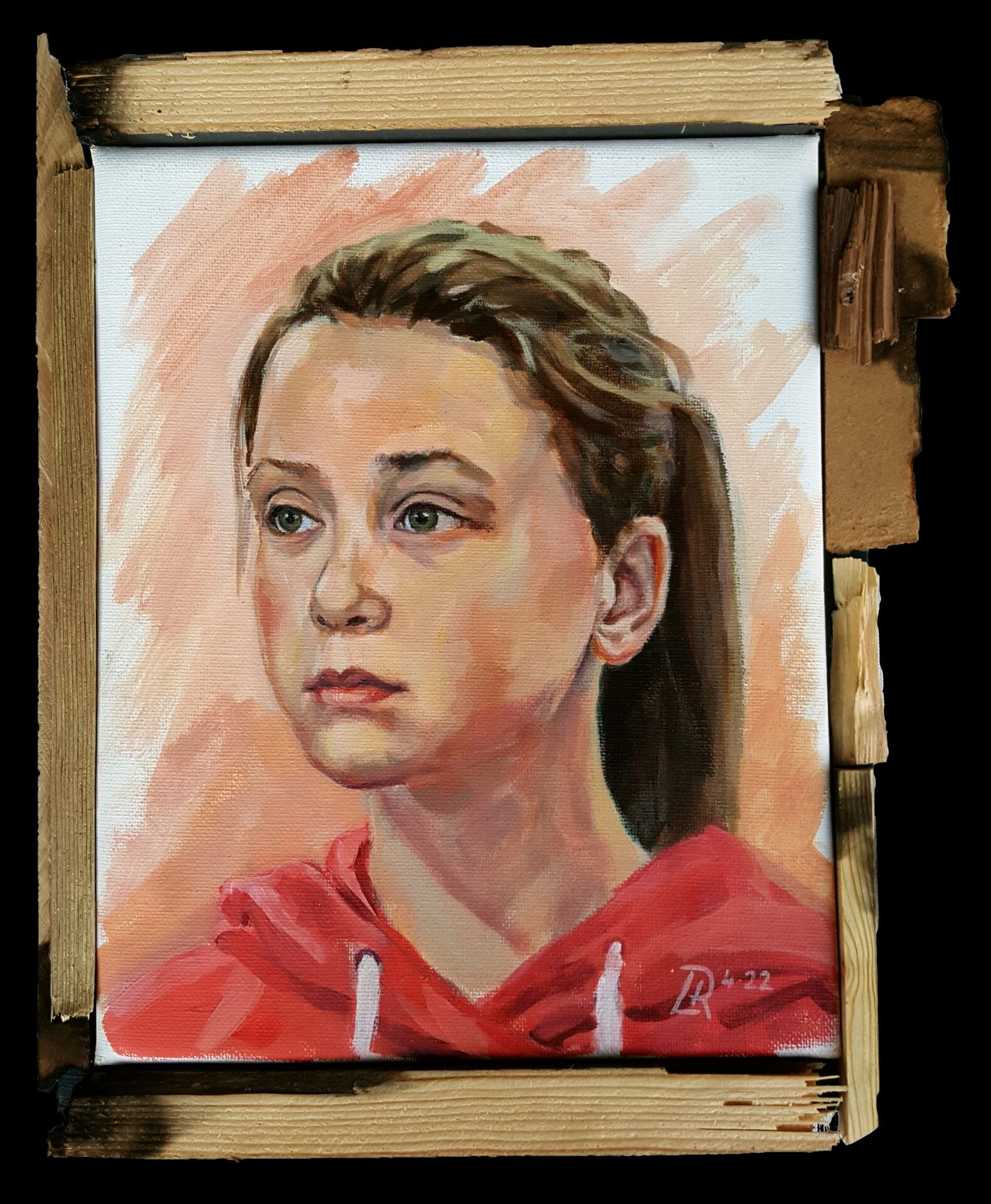 I lived in Zaporizhzhya and was just enjoying going to the gym, dancing and developing myself before the war started. My mother, stepdad, dad and I fled to Greece where I have resid-ency. Now I am visiting my school friend, Taras. Even though I have the freedom to travel anywhere in the world, I just want to go back home where I belong.