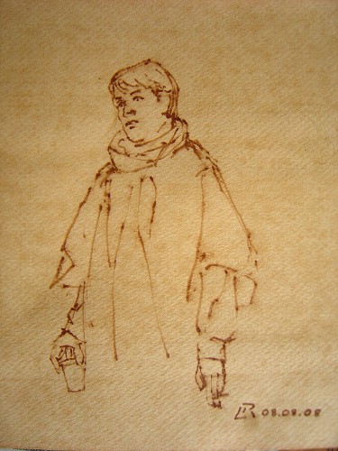 While drawing the wall someone suggested I put my cartridge paper in the rain and draw on it with my water colour pencils!
