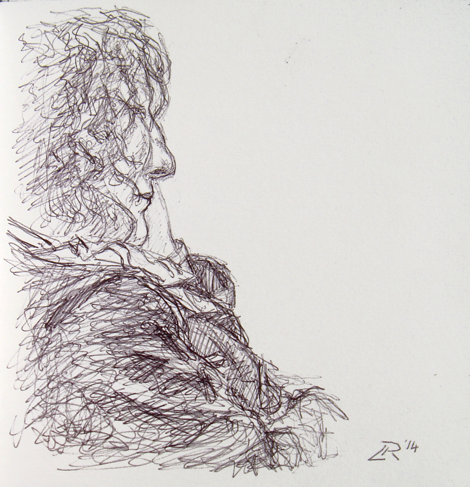 I drew this of the slumbering lady next to me on my plane journey to Austria.