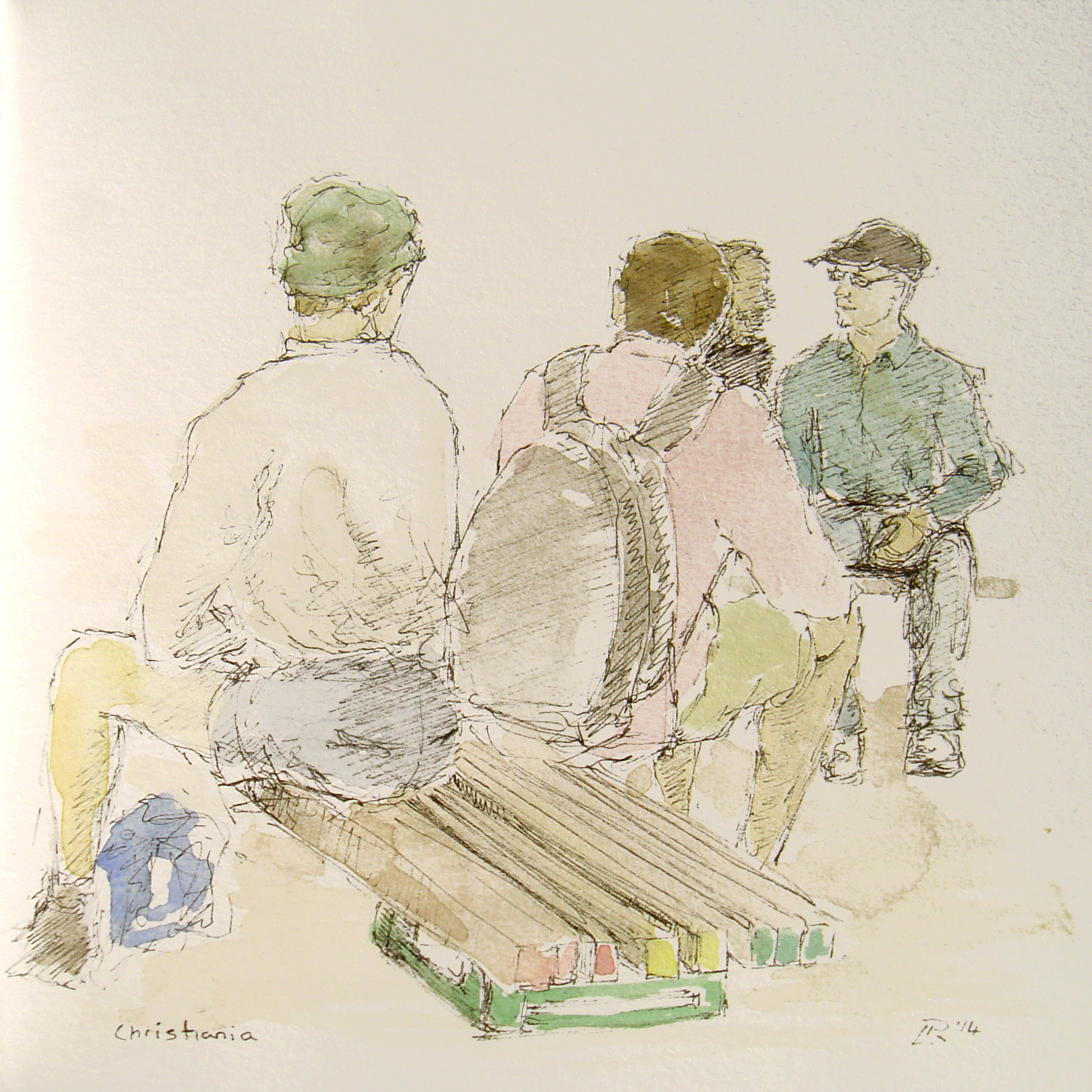 Pen and watercolour on paper