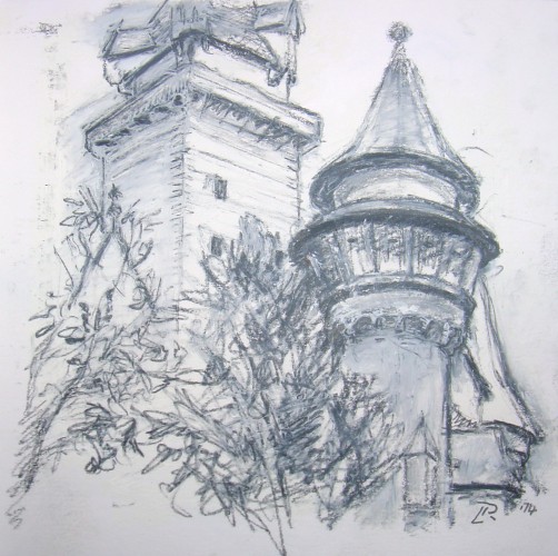 Oil bar and pencil on paper