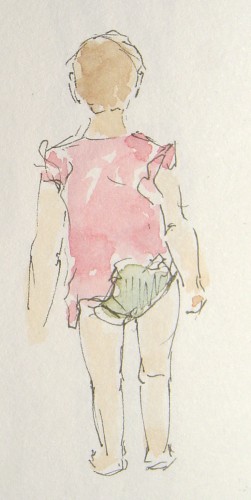 July 2014 Pen and watercolour on paper 3x7cm The beach is an enjoyable place to practice drawing people