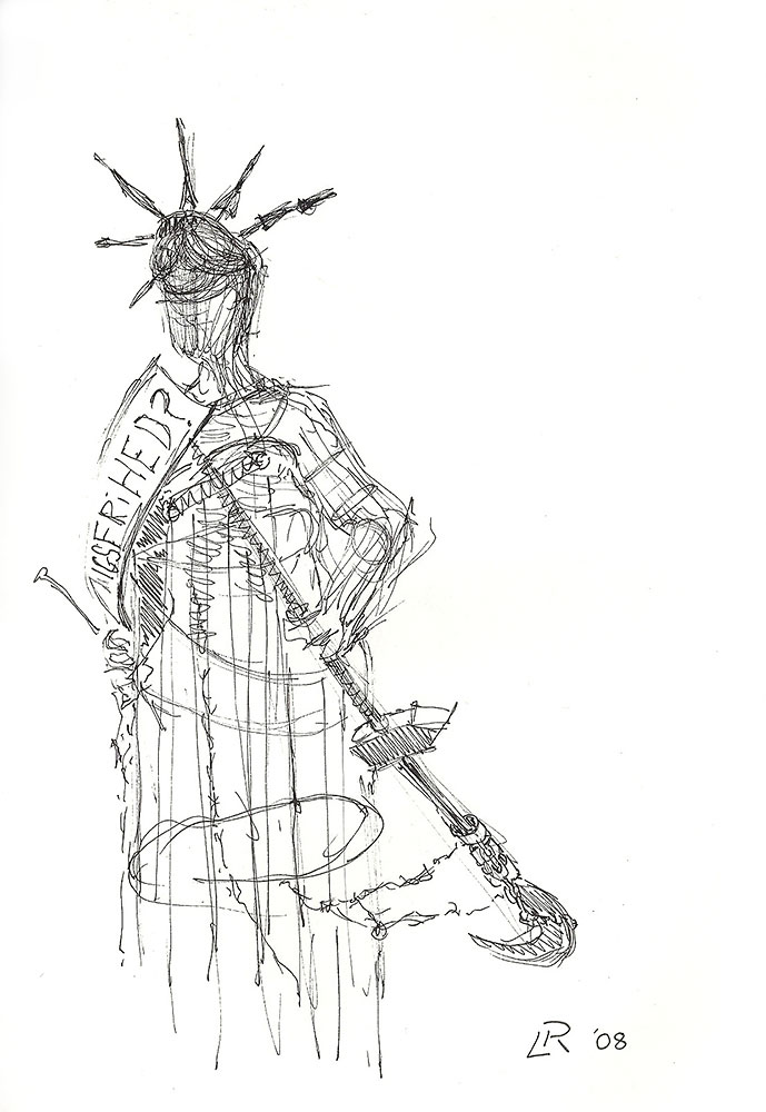 This was a very rustic version of the Statue of Libery that used to be in Pusher Street. Ironically, it was removed.